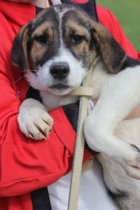 Diese Geschwisterwelpen sind aus dem städtischen Shelter. Sie wurden bei kriminellen Zigeunern (darf man das noch sagen?) gefunden. Sie waren allein, hungrig und wild. Der Chef des Shelters hat sie aufgenommen, aber sie waren sehr ängstlich Menschen gegenüber, weil sie 3 Monate lang keine menschliche Zuwendung bekamen. Vielleicht wurden sie schlecht behandelt, vielleicht hat man auch Steine nach ihnen geworfen. Als Resultat davon hat Billy angefangen zu schnappen, wenn man nach ihm greift. Gigi hat zwar Angst, interessiert sich aber trotzdem!