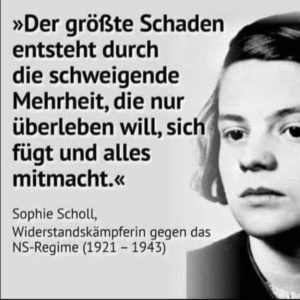 «Der größte Schaden entsteht durch die schweigende Mehrheit, die nur überleben will, sich fügt und alles mitmacht.» Sophie Scholl